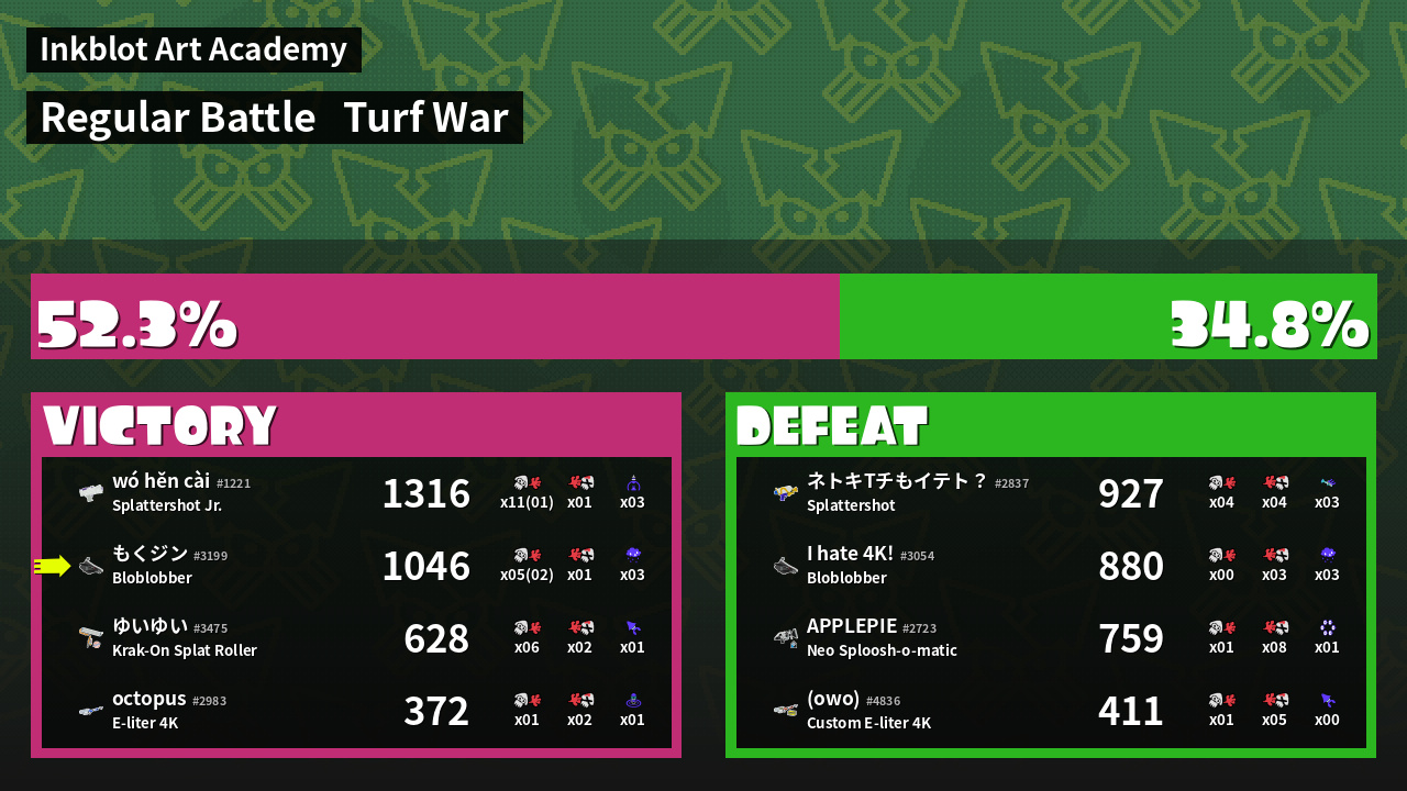 | Medals | #1 Home-Base Inker #1 Super Jump Spot #1 Splat Assister | ||