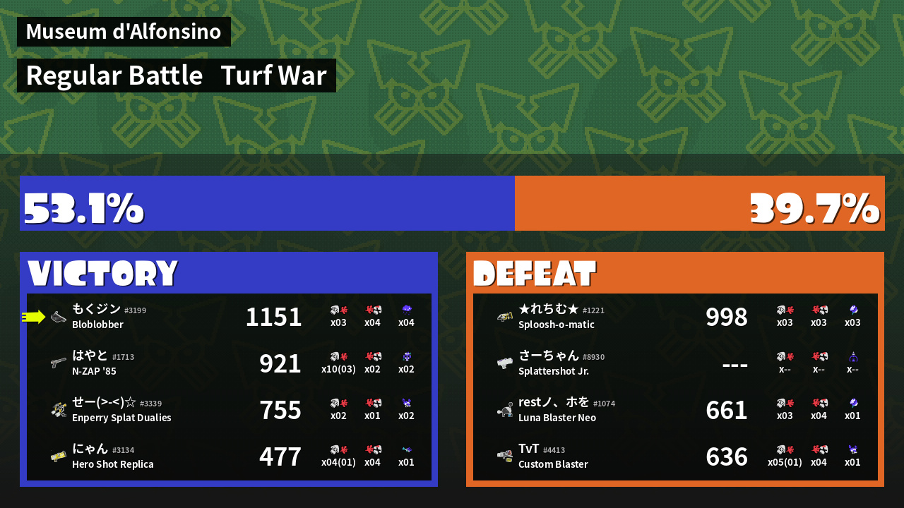 | Mode | Turf War - Regular Battle | ||