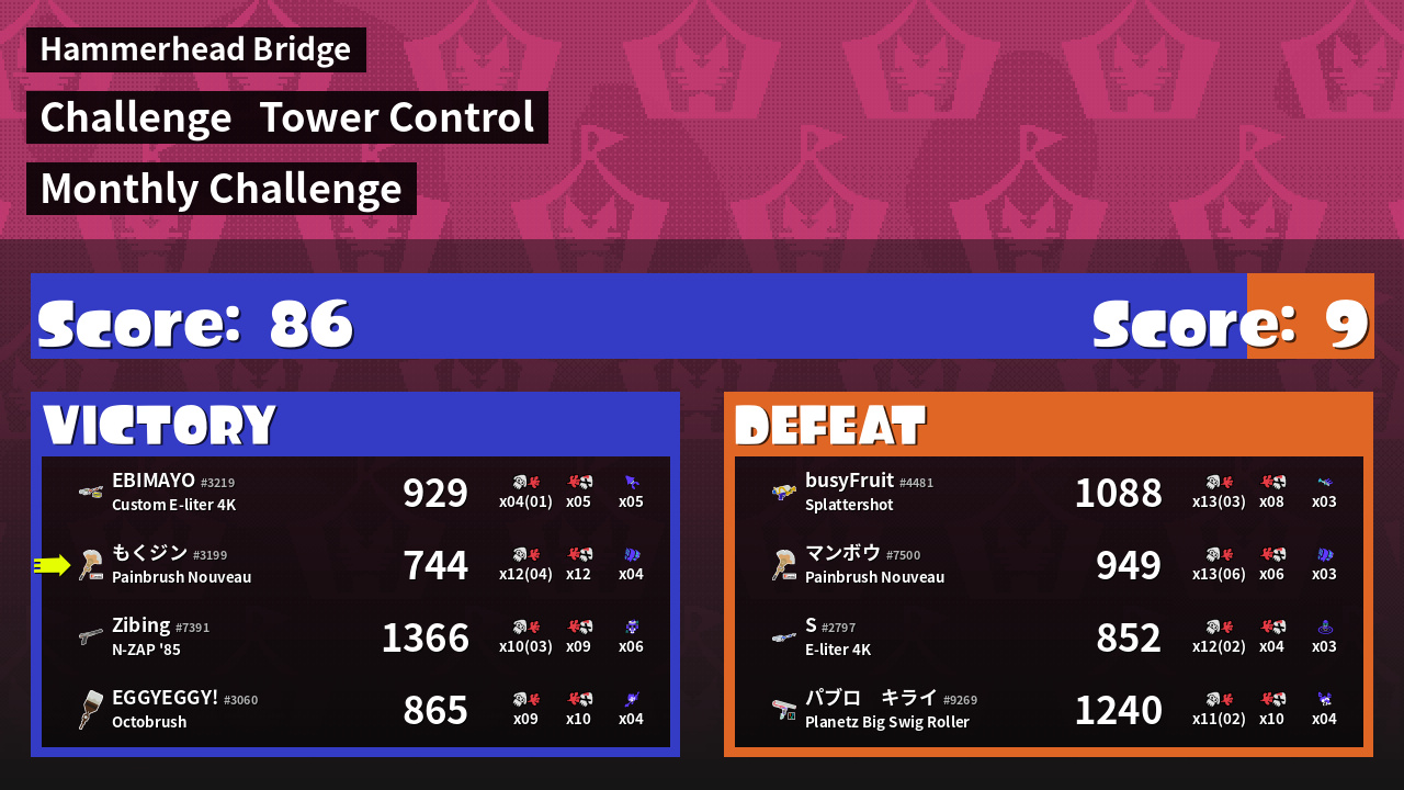 | Medals | #1 Overall Splatter #1 Splat Assister #1 Tenta Missiles User | ||