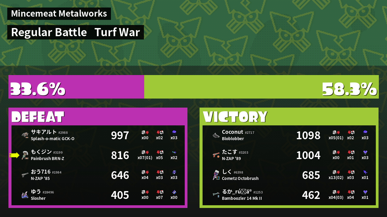 | Mode | Turf War - Regular Battle | ||