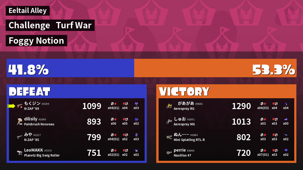 | Mode | Turf War - Challenge | ||