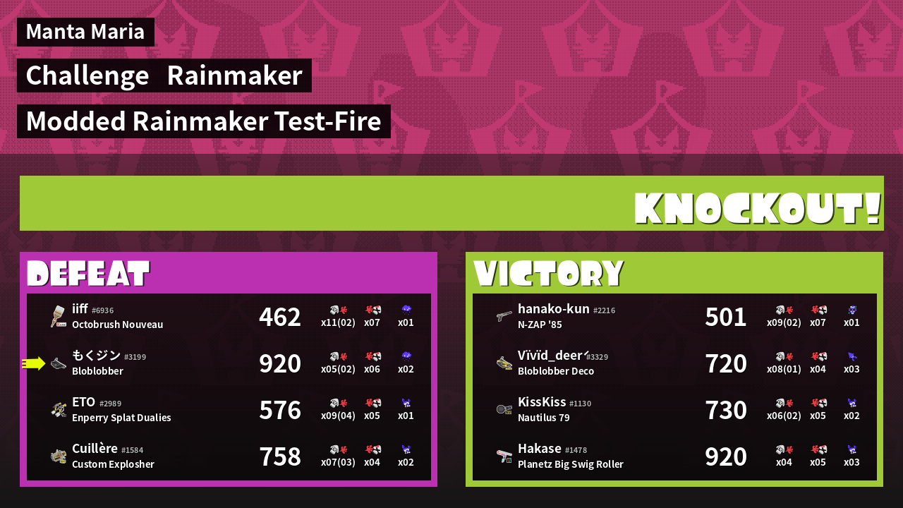 | Weapon | Bloblobber ( Sprinkler / Ink Storm) | ||