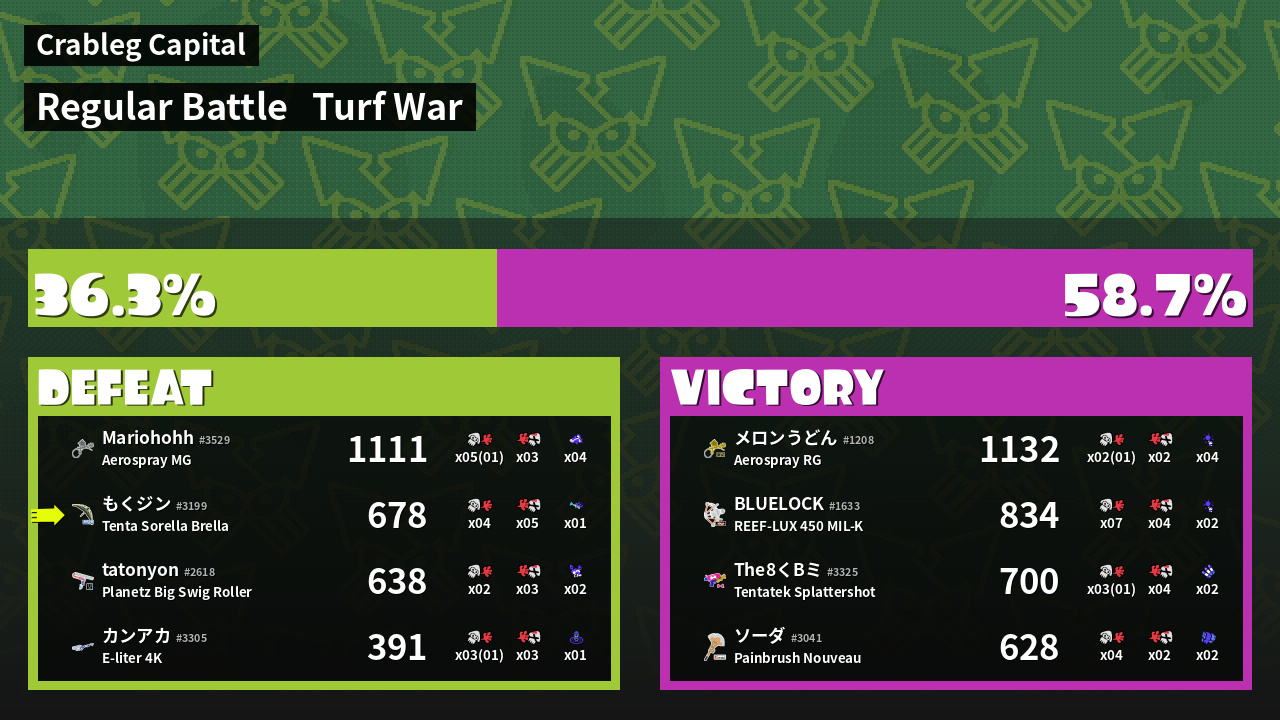 | Mode | Turf War - Regular Battle | ||