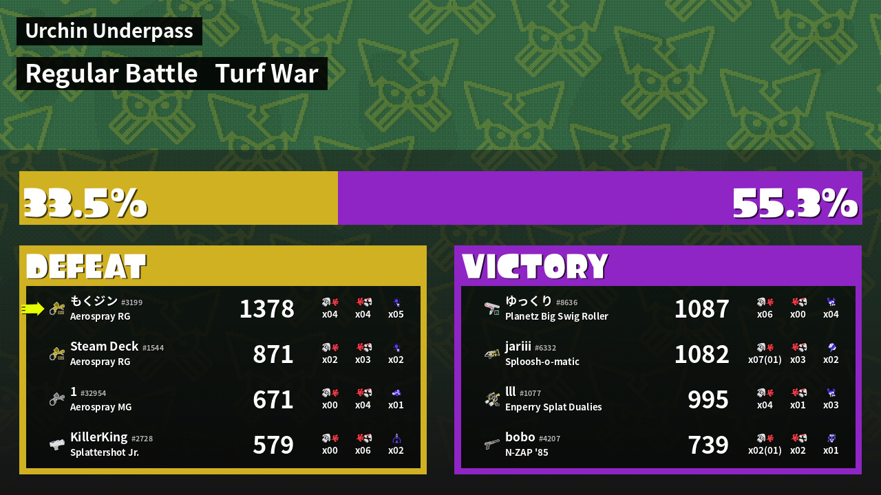 | Mode | Turf War - Regular Battle | ||