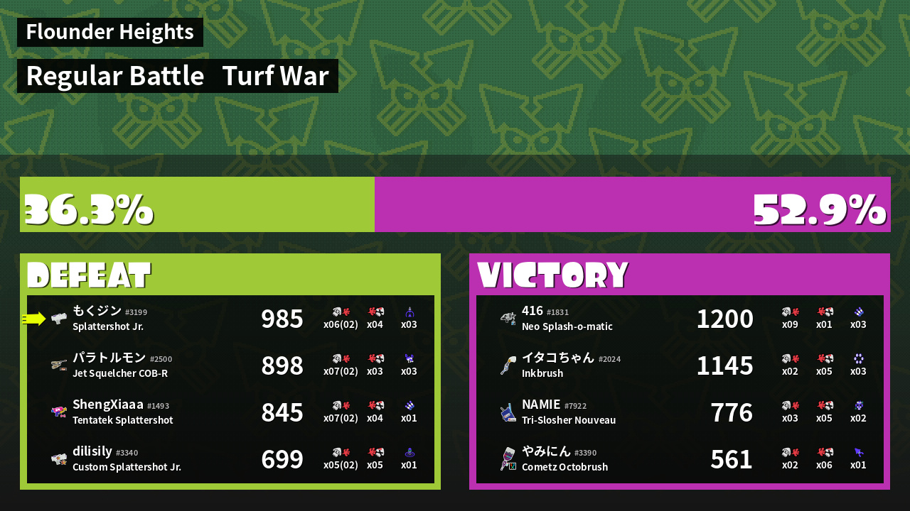 | Medals | #1 Turf Inker #1 Enemy-Base Inker #1 Splat Assister | ||