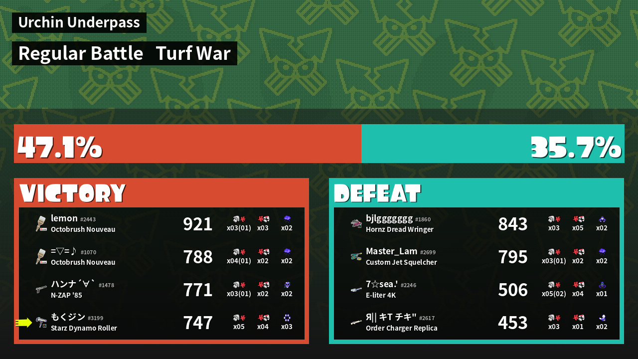 | Medals | #1 Overall Splatter #1 Home-Base Inker #1 Enemy Splatter | ||
