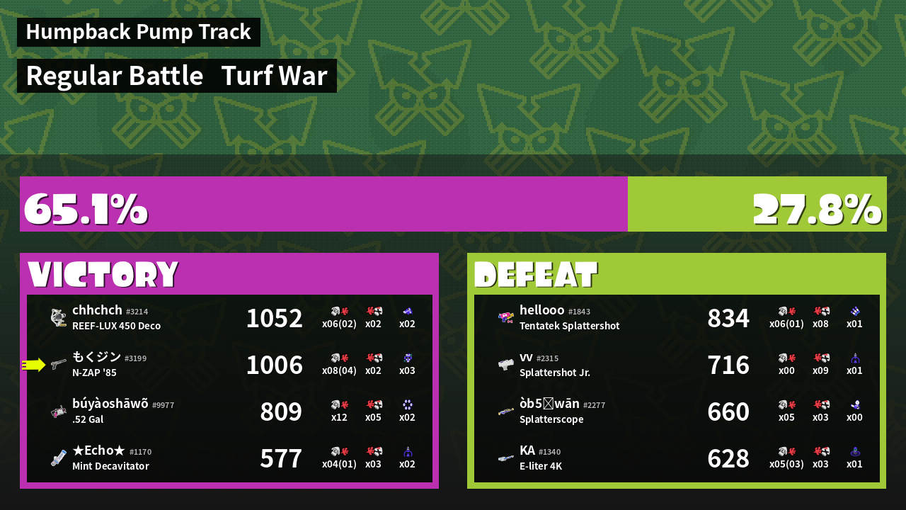 | Medals | #1 Splat Assister #1 Ink Consumer #1 Tacticooler User | ||