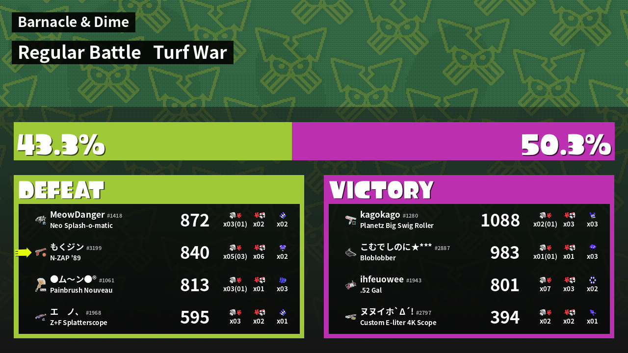 | Medals | #1 Overall Splatter #1 Enemy-Base Inker #1 Splat Assister | ||