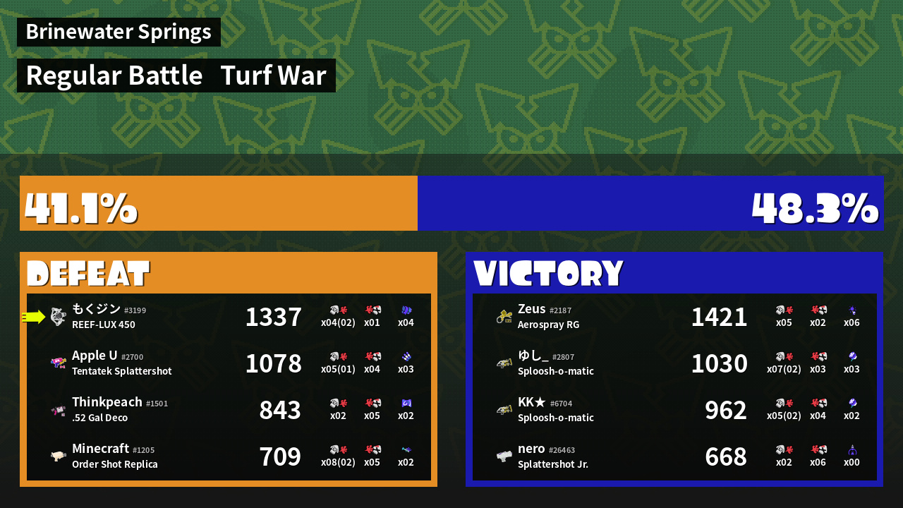 | Mode | Turf War - Regular Battle | ||