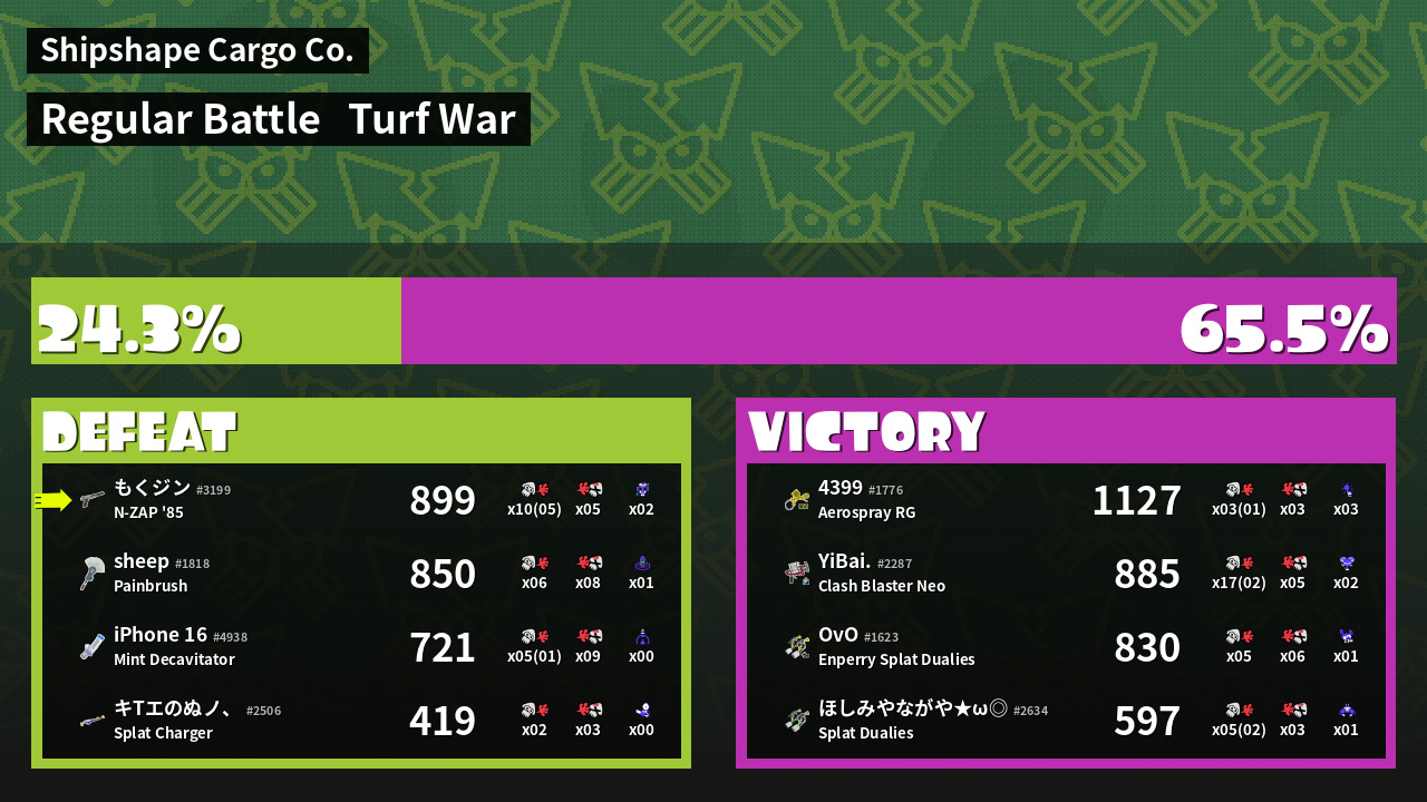 | Mode | Turf War - Regular Battle | ||