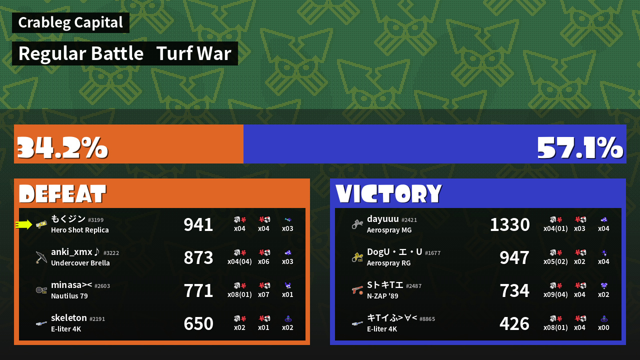 | Mode | Turf War - Regular Battle | ||