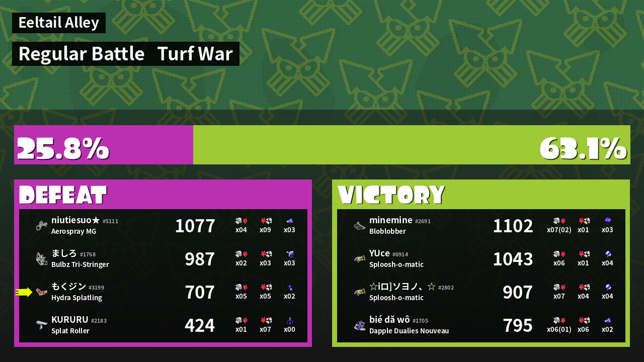 | Medals | #1 Overall Splatter #1 Enemy Splatter #1 Base Defender | ||