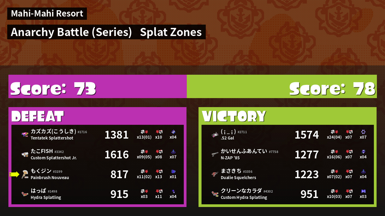 | Mode | Splat Zones - Anarchy Battle (Series) | ||