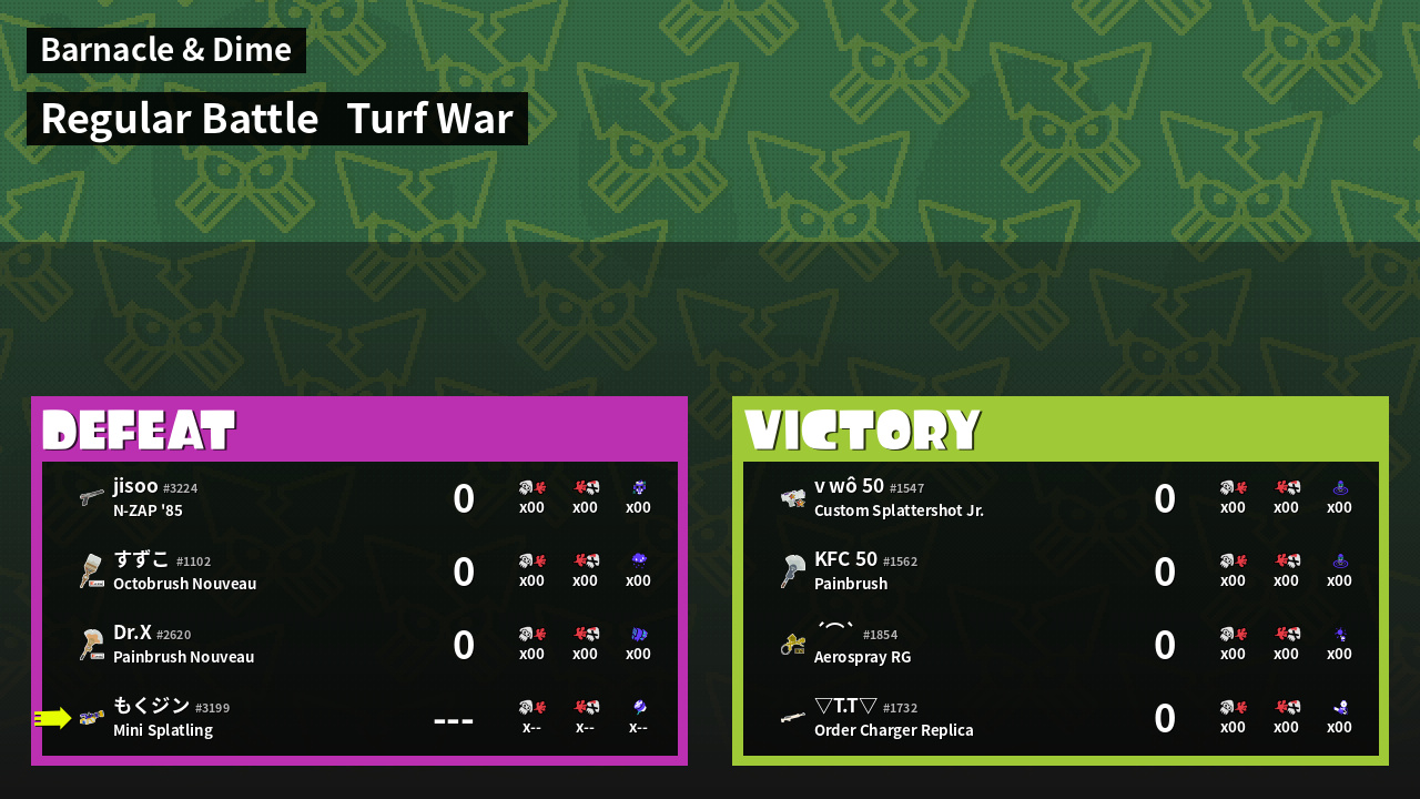 | Mode | Turf War - Regular Battle | ||