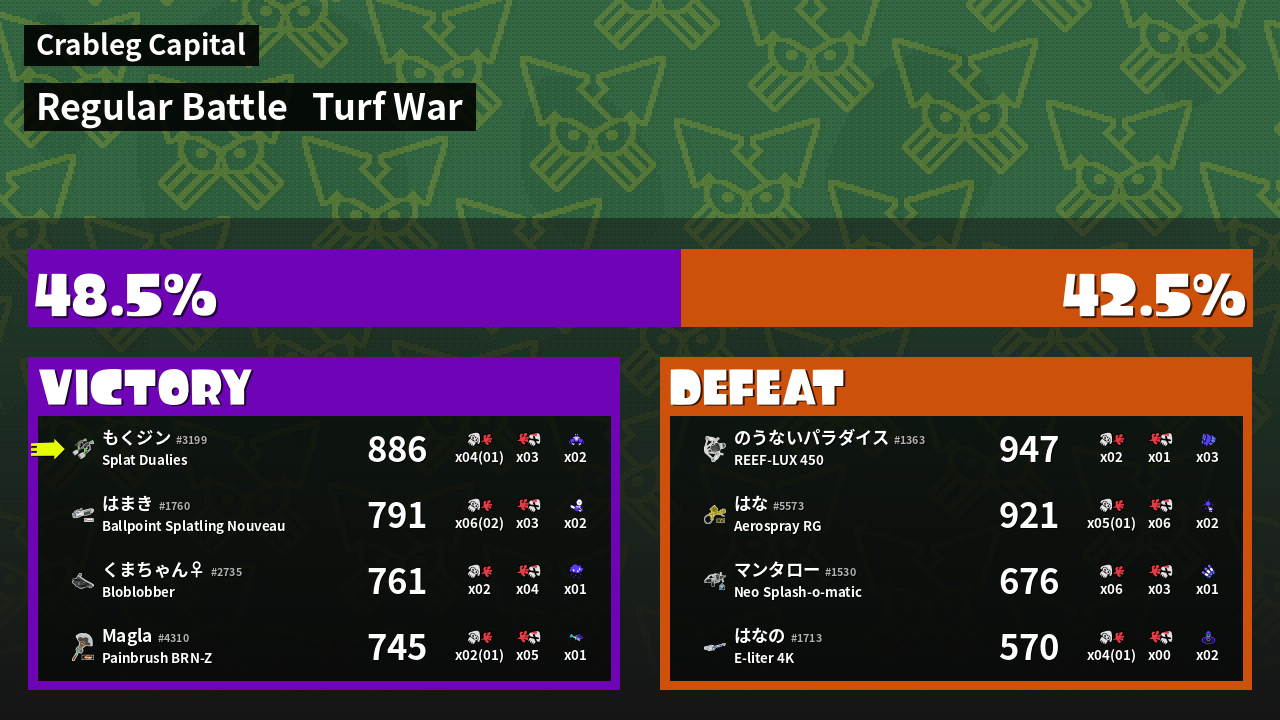 | Medals | #1 Turf Inker #1 Enemy-Base Inker #2 Overall Splatter | ||