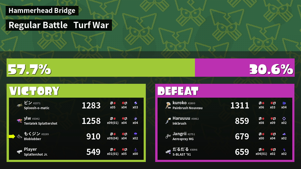 | Mode | Turf War - Regular Battle | ||