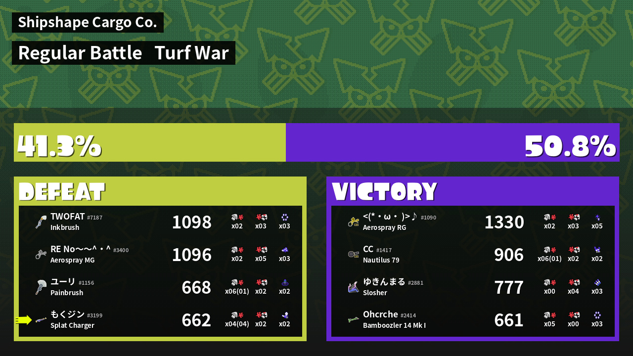 | Medals | #1 Splat Assister #1 Ink Consumer #1 Ink Vac User | ||