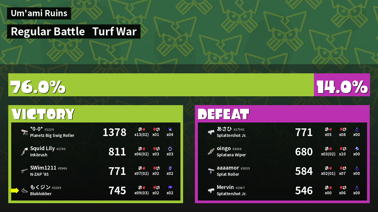 | Medals | #1 Home-Base Inker #1 Splat Assister #1 Ink Consumer | ||