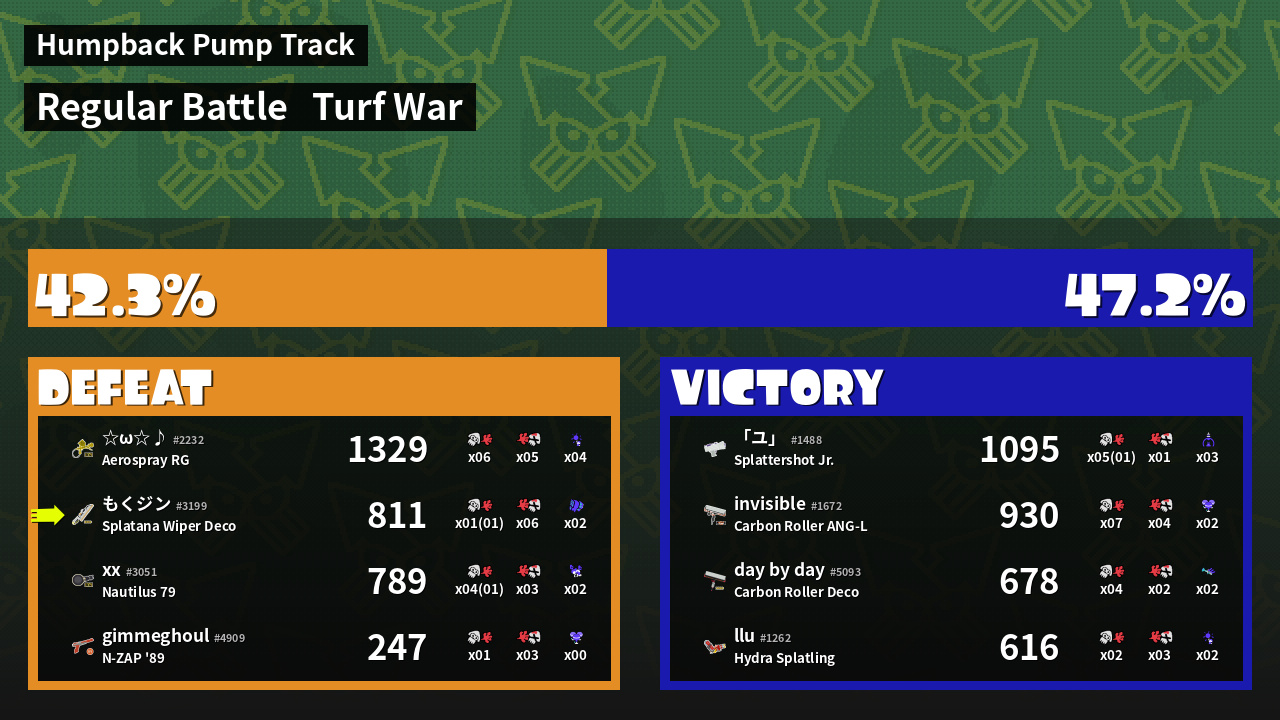 | Mode | Turf War - Regular Battle | ||