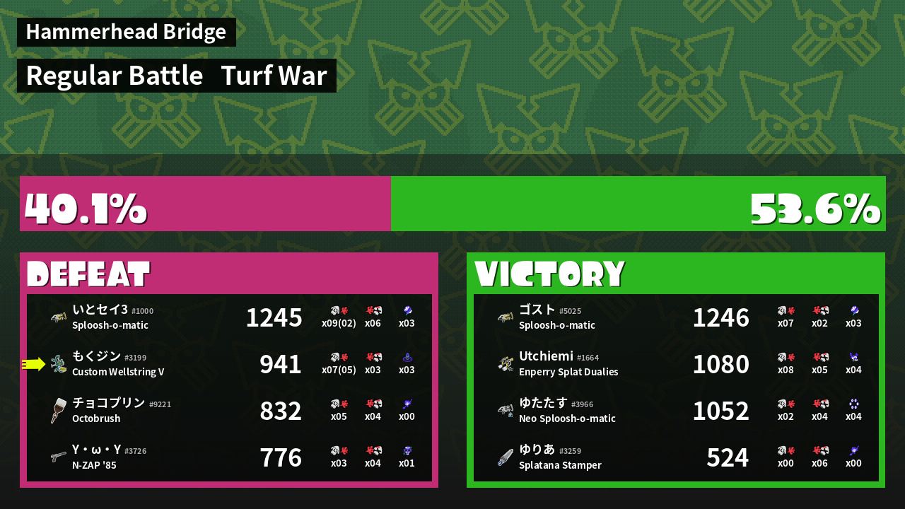 | Medals | #1 Splat Assister #1 Ink Consumer #1 Wave Breaker User | ||