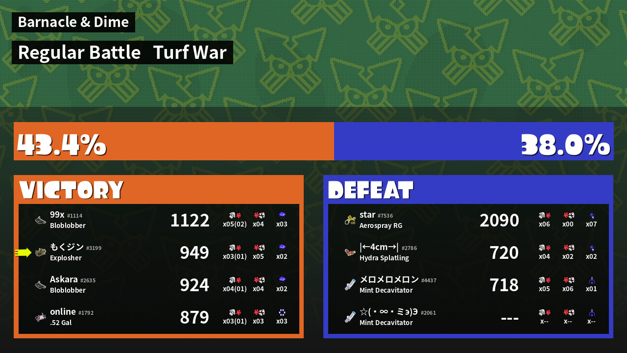 | Mode | Turf War - Regular Battle | ||