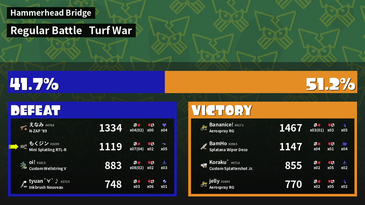 | Mode | Turf War - Regular Battle | ||
