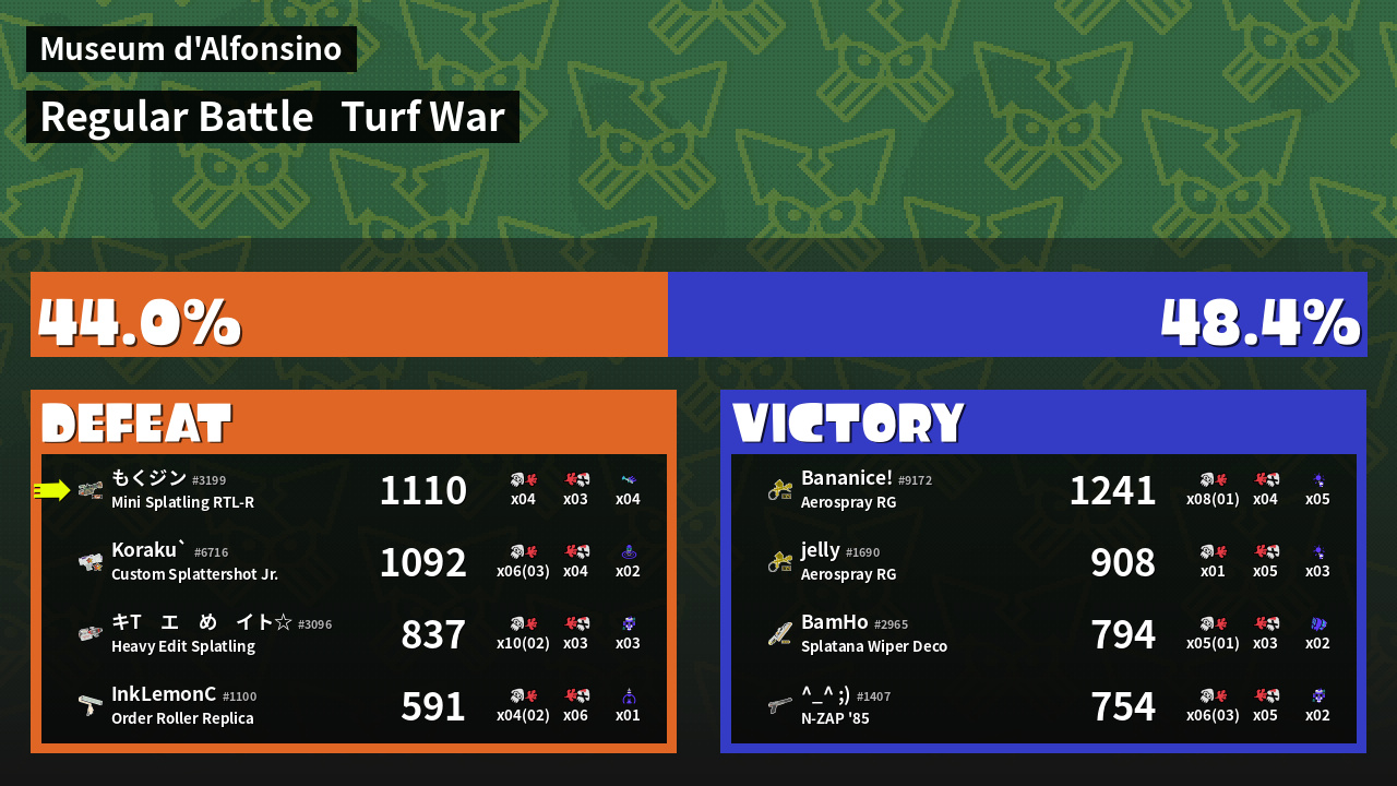 | Mode | Turf War - Regular Battle | ||