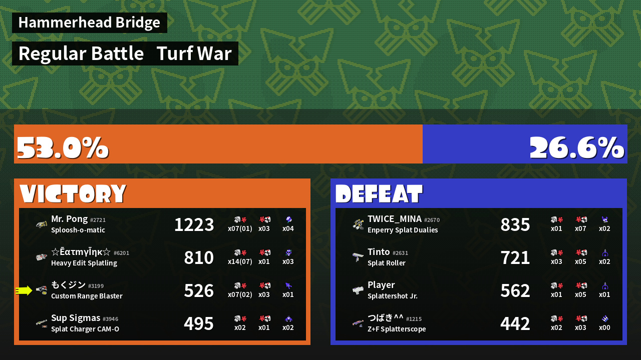 | Mode | Turf War - Regular Battle | ||