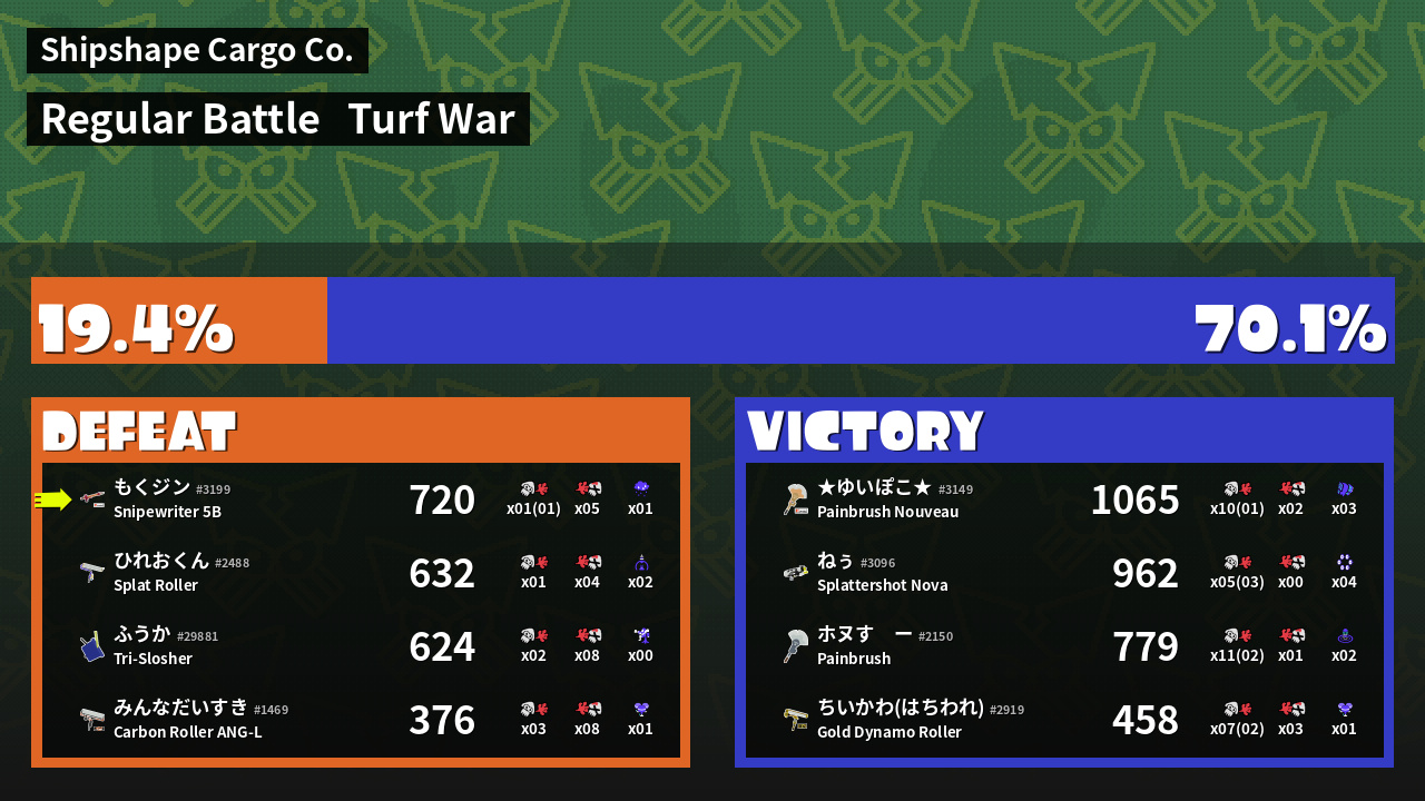 | Medals | #1 Turf Inker #1 Enemy-Base Inker #1 Splat Assister | ||