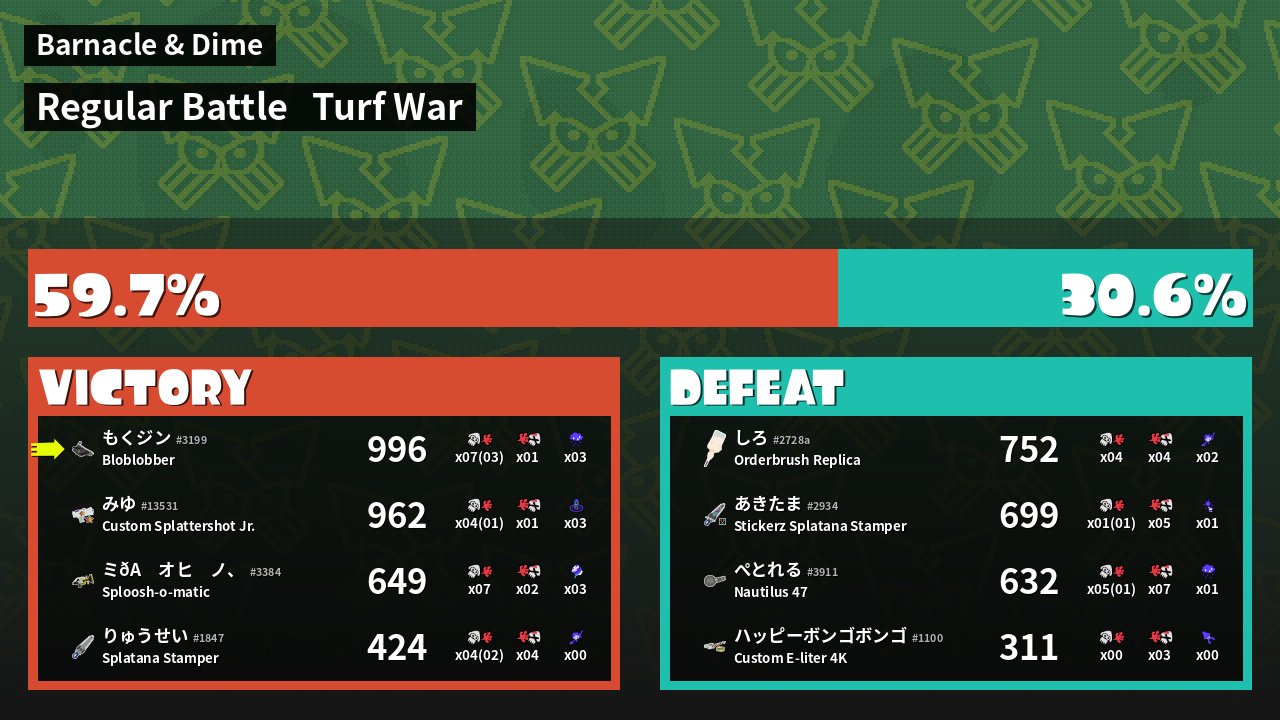| Mode | Turf War - Regular Battle | ||