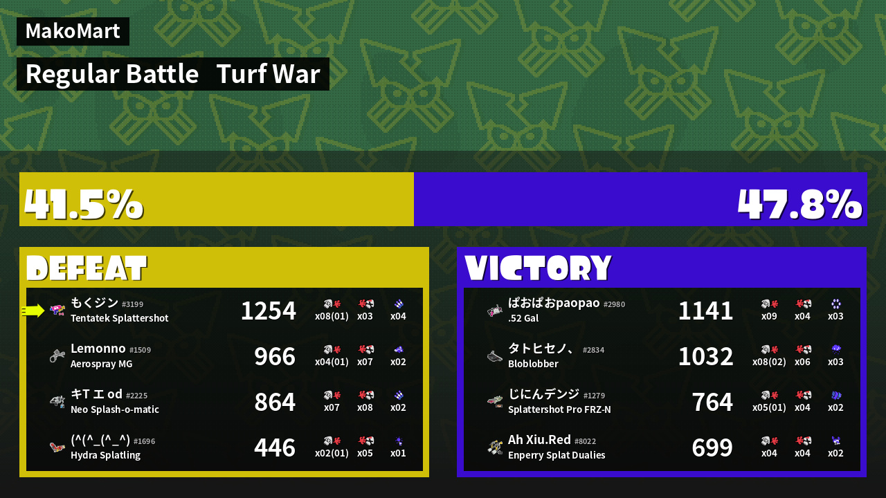 | Mode | Turf War - Regular Battle | ||