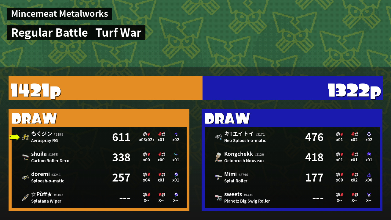 | Mode | Turf War - Regular Battle | ||