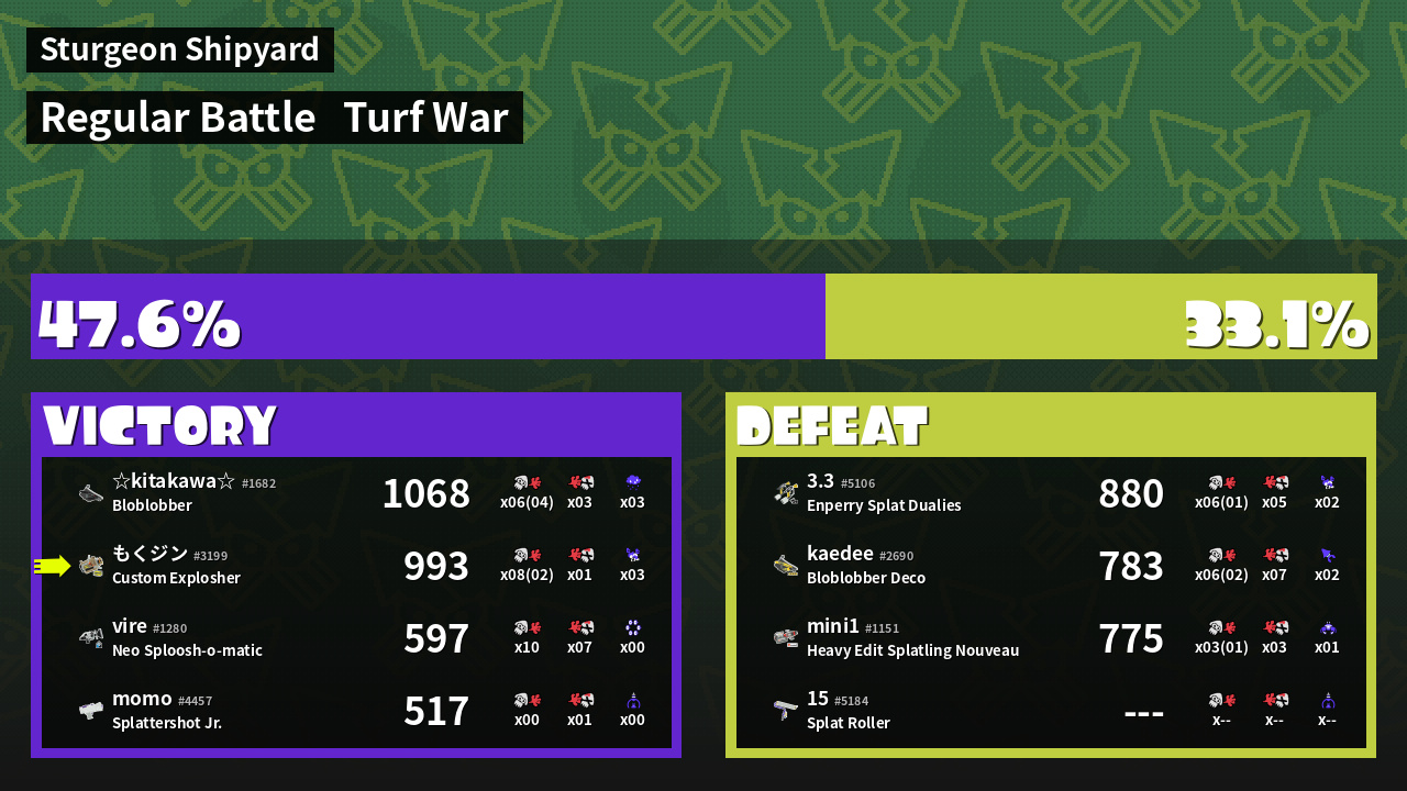| Mode | Turf War - Regular Battle | ||
