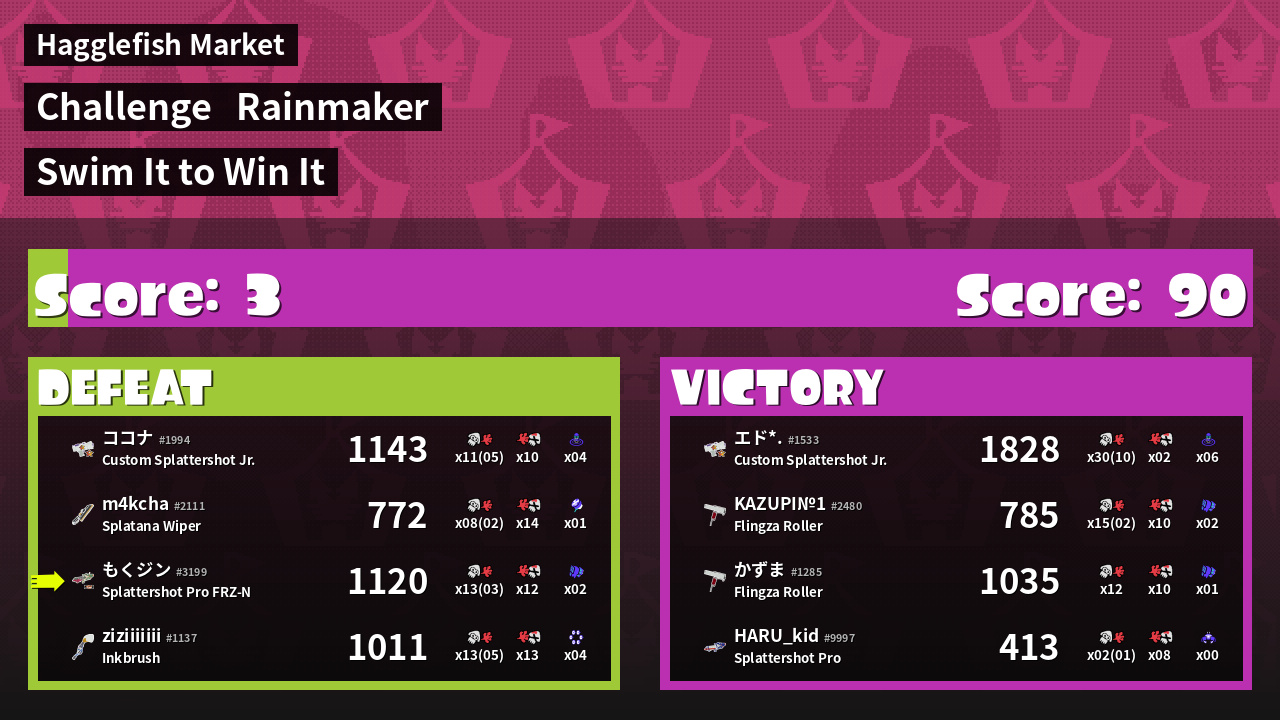 | Medals | #1 Overall Splatter #1 Enemy Splatter #1 Rainmaker Stopper | ||