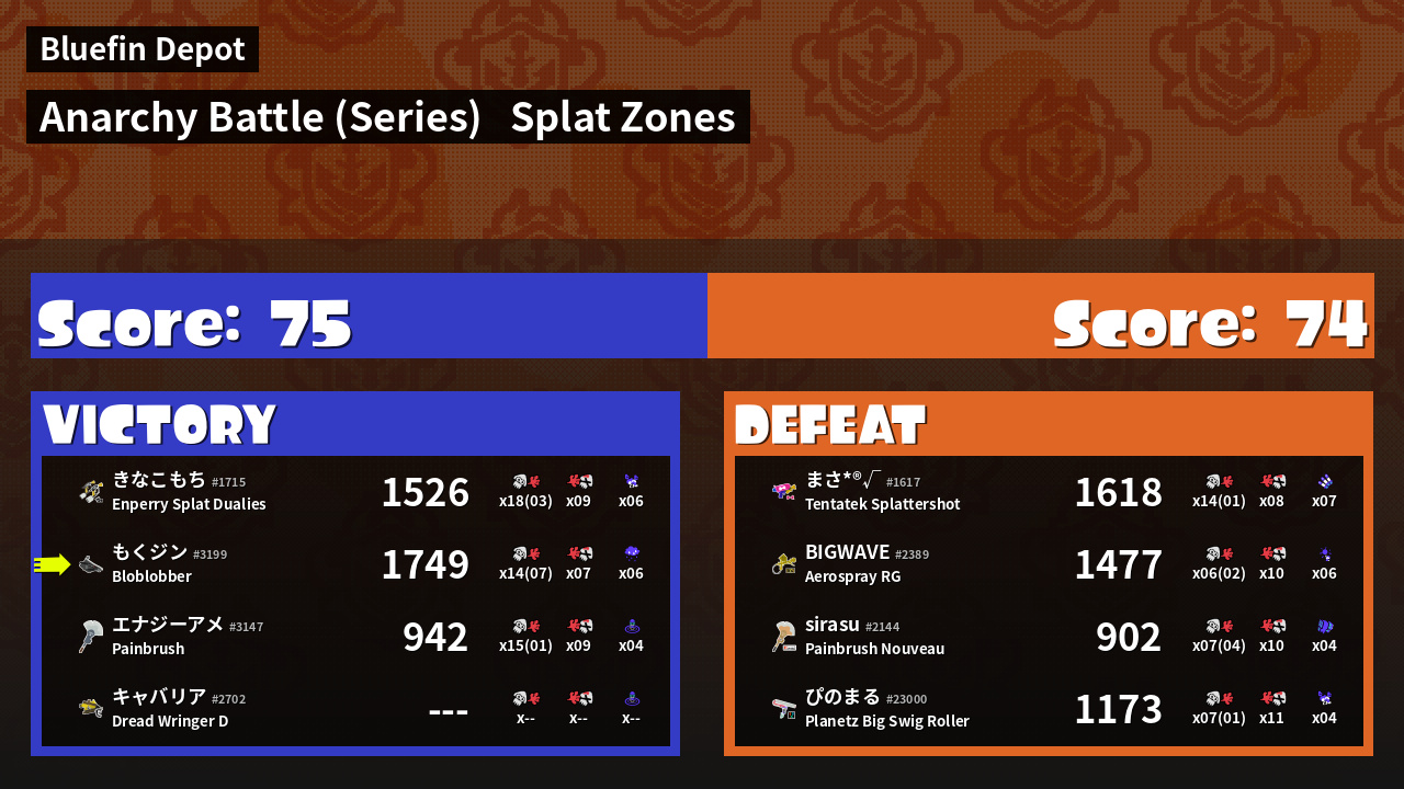 | Mode | Splat Zones - Anarchy Battle (Series) | ||