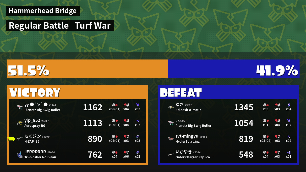 | Mode | Turf War - Regular Battle | ||
