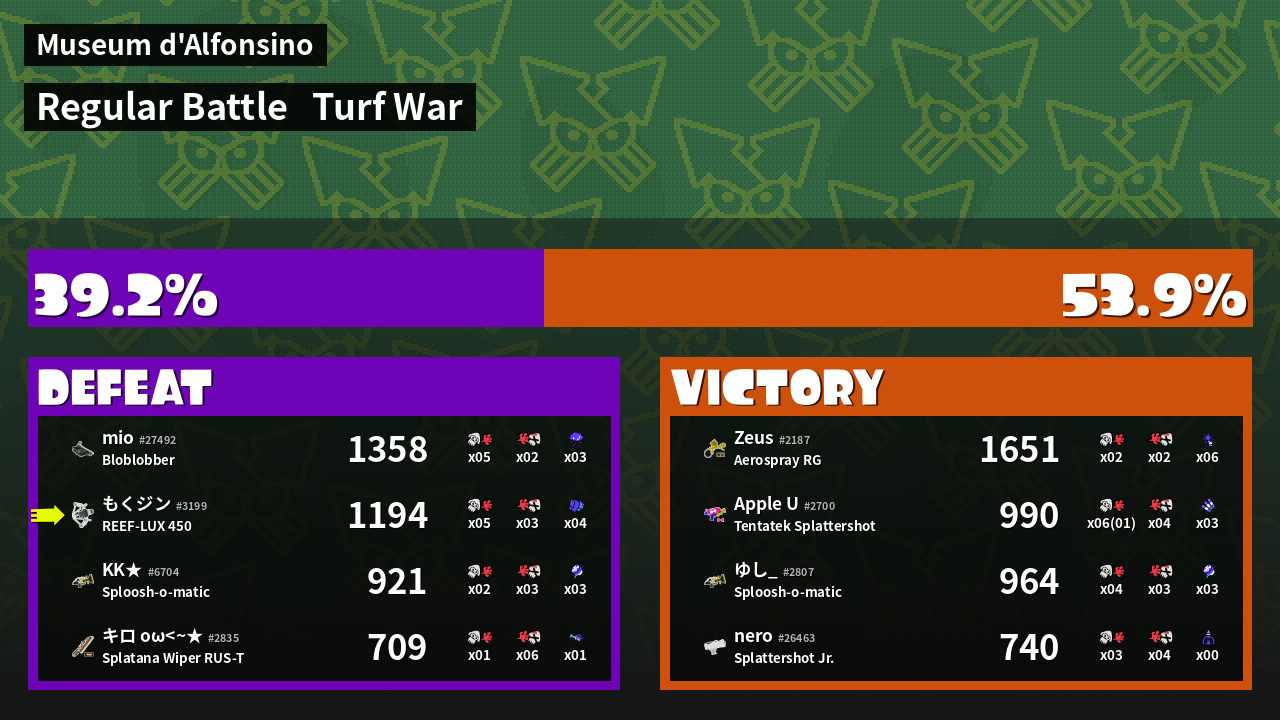 | Mode | Turf War - Regular Battle | ||