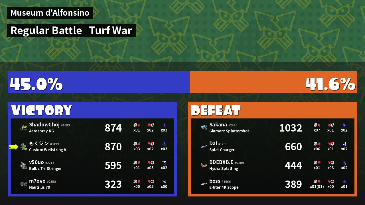 | Mode | Turf War - Regular Battle | ||