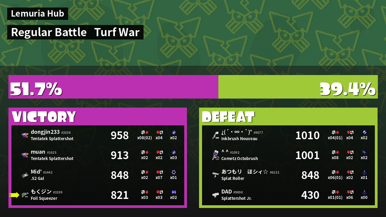 | Mode | Turf War - Regular Battle | ||