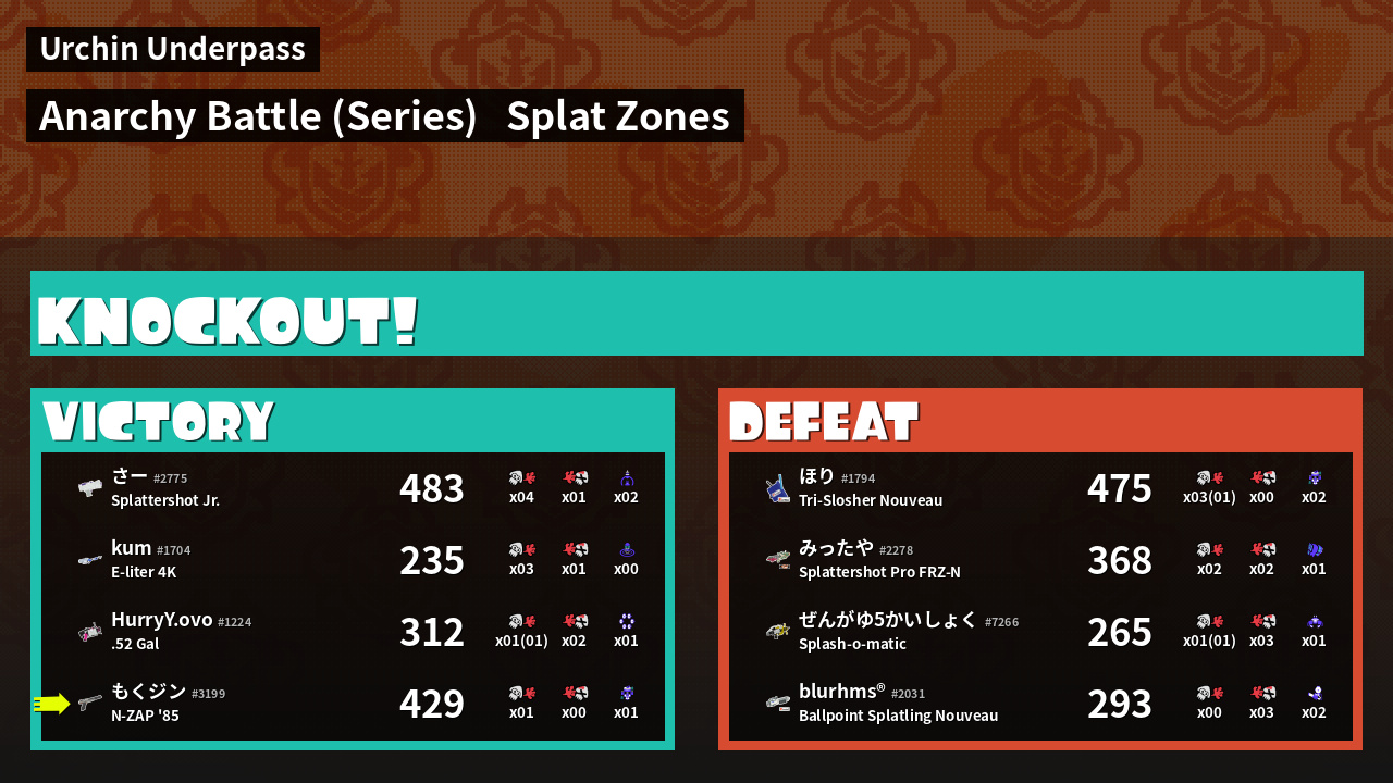 | Mode | Splat Zones - Anarchy Battle (Series) | ||