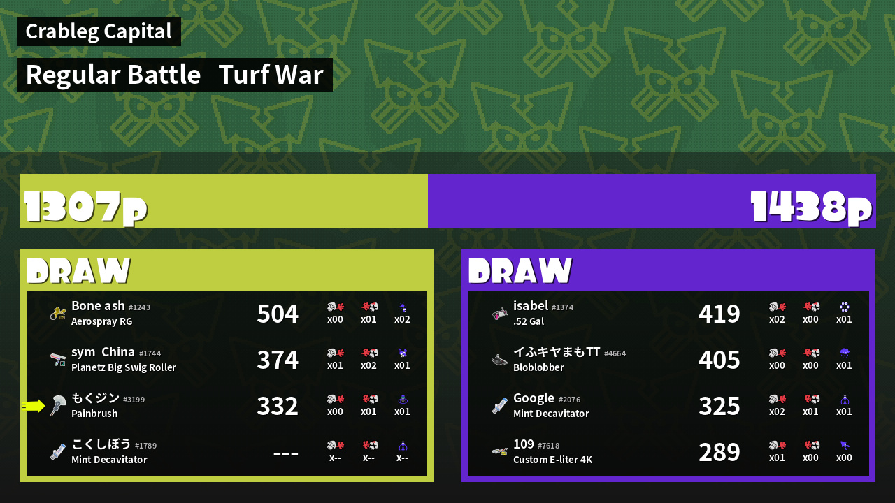 | Mode | Turf War - Regular Battle | ||