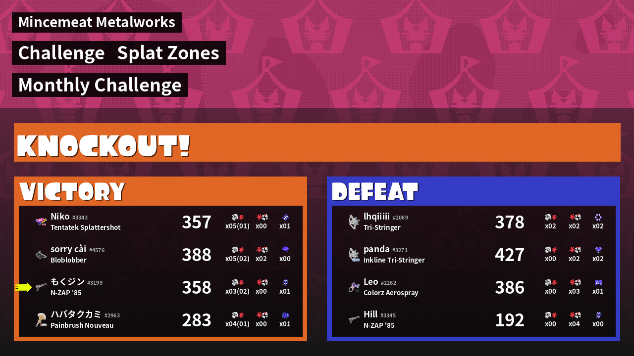 | Medals | #1 Super Jump Spot #1 Splat Assister #2 Splat Zone Inker | ||