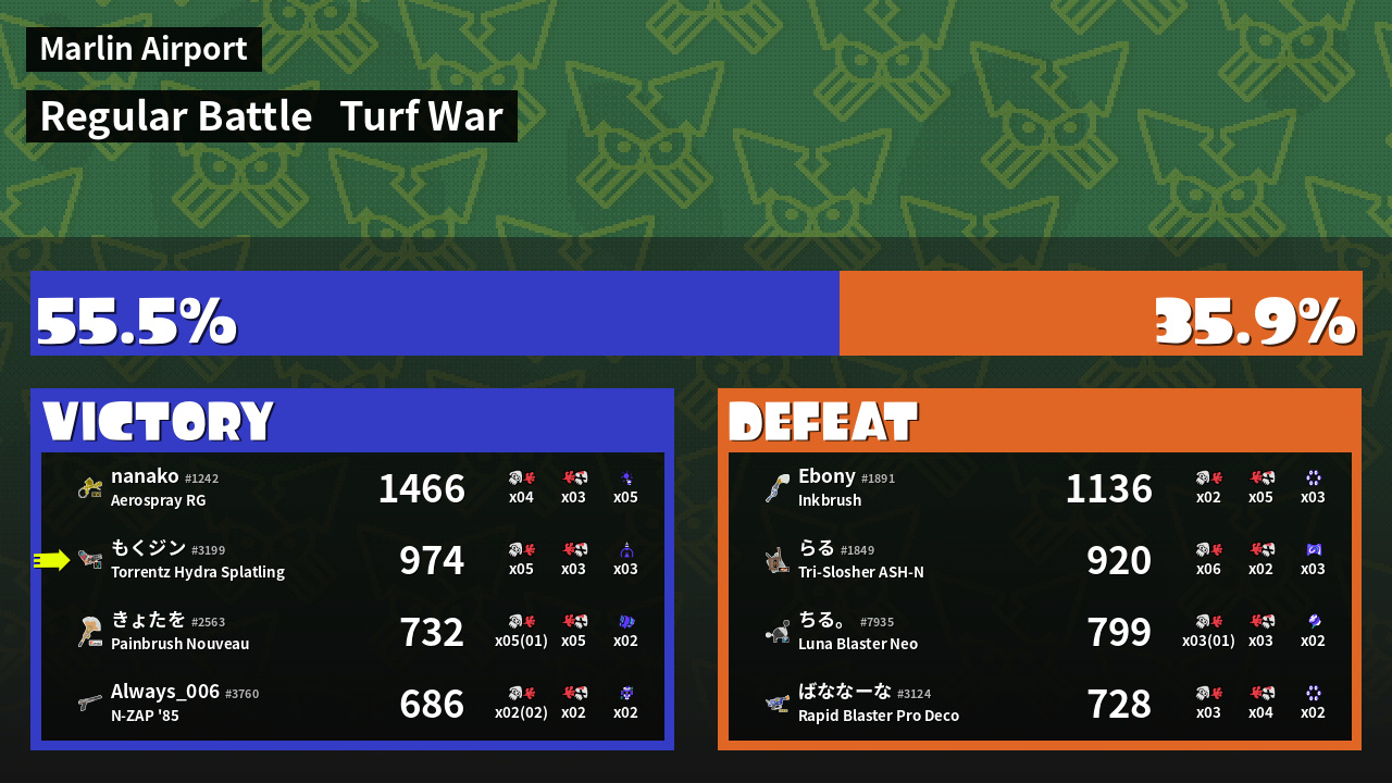 | Mode | Turf War - Regular Battle | ||