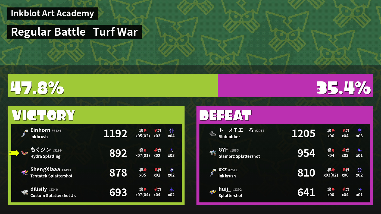 | Mode | Turf War - Regular Battle | ||