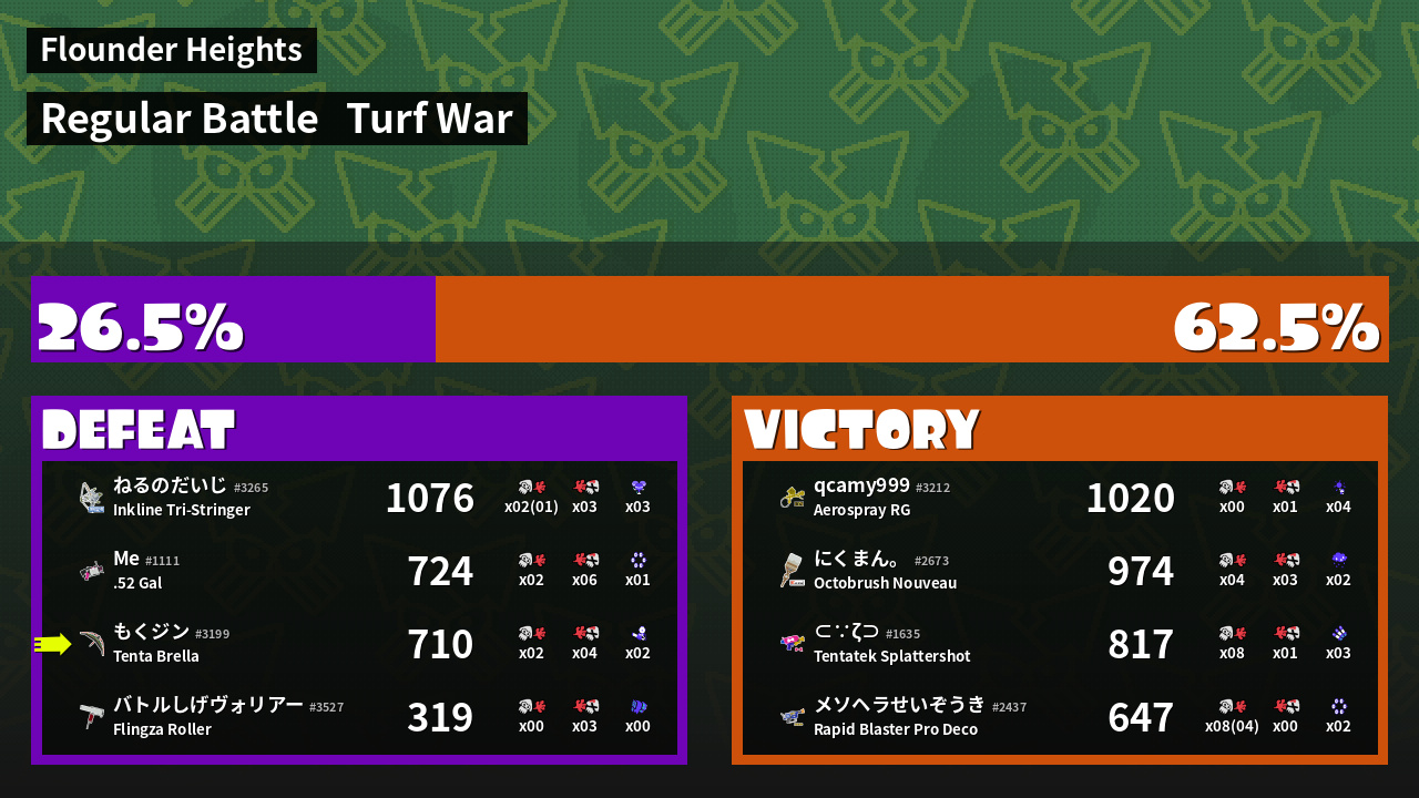 | Mode | Turf War - Regular Battle | ||