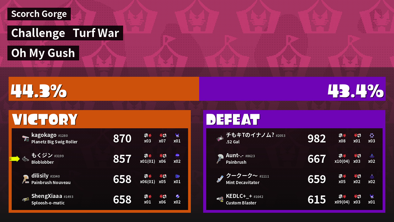 | Mode | Turf War - Challenge | ||