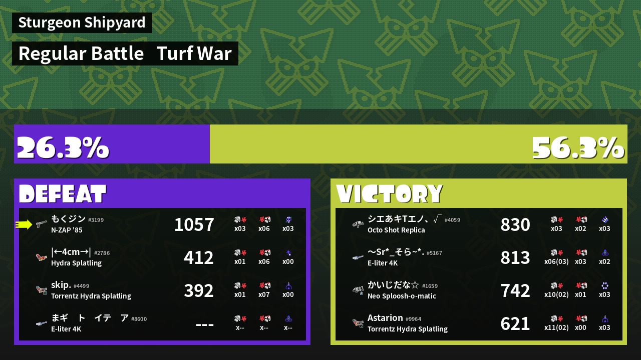 | Mode | Turf War - Regular Battle | ||