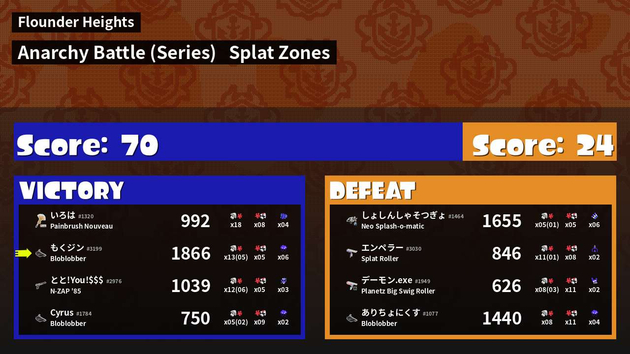 | Mode | Splat Zones - Anarchy Battle (Series) | ||
