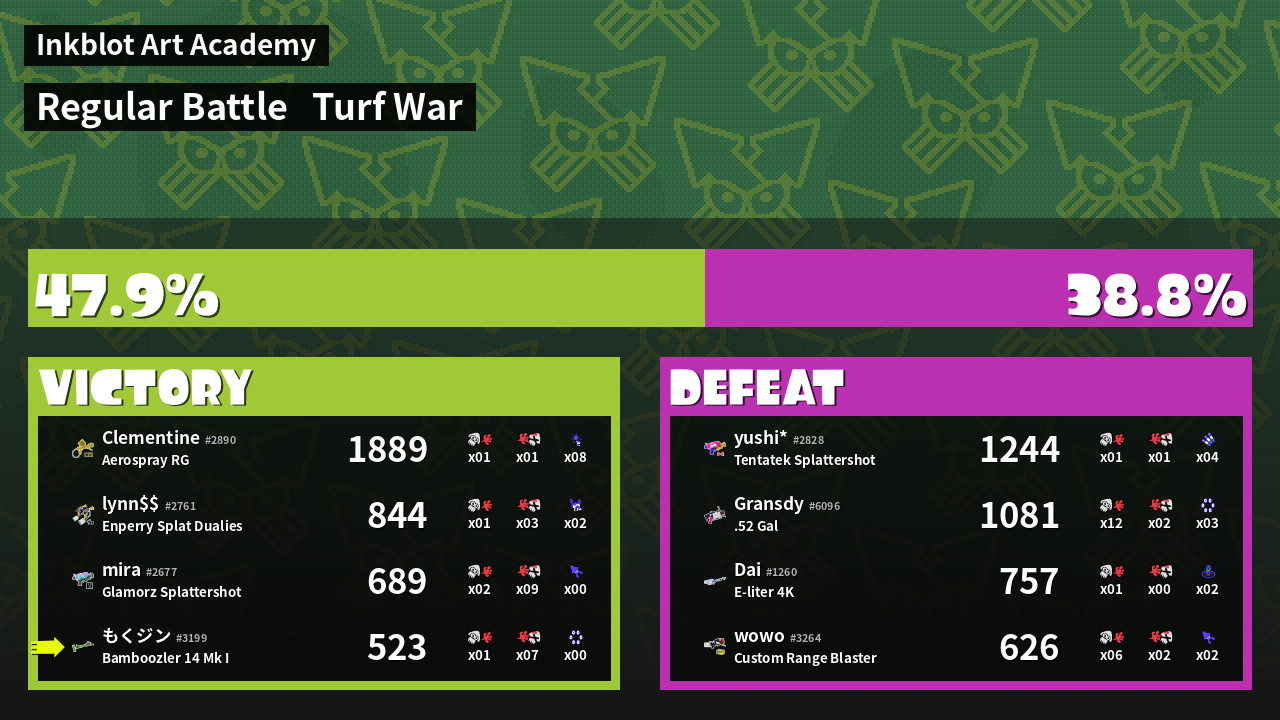 | Medals | #1 Popular Target #1 Ink Consumer #2 Overall Splatter | ||