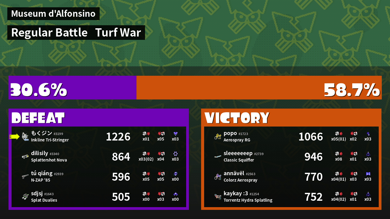 | Weapon | Inkline Tri-Stringer ( Sprinkler / Super Chump) | ||